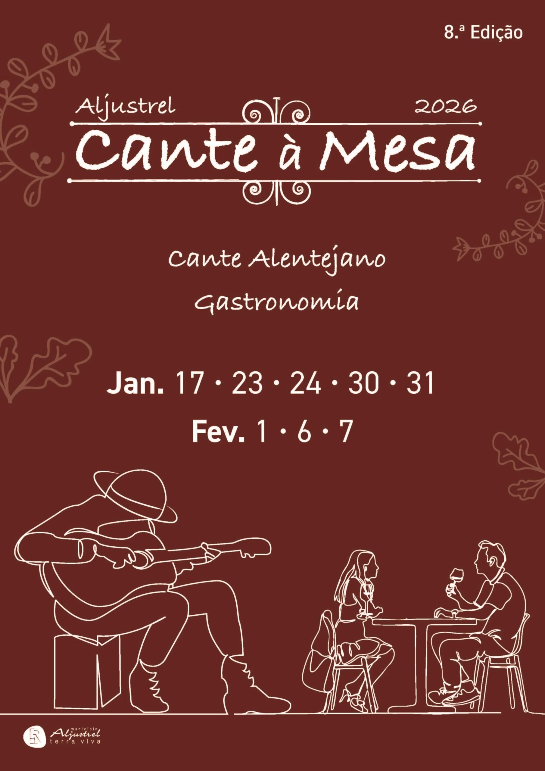 O “Cante à Mesa” está de regresso e aos fins de semana, entre os dias 17 de janeiro e 7 de fevereiro, vai dinamizar todos os estabelecimentos de restauração aderentes do Concelho de Aljustrel. À mesa juntar-se-ão os melhores ingredientes: cante e gastronomia...