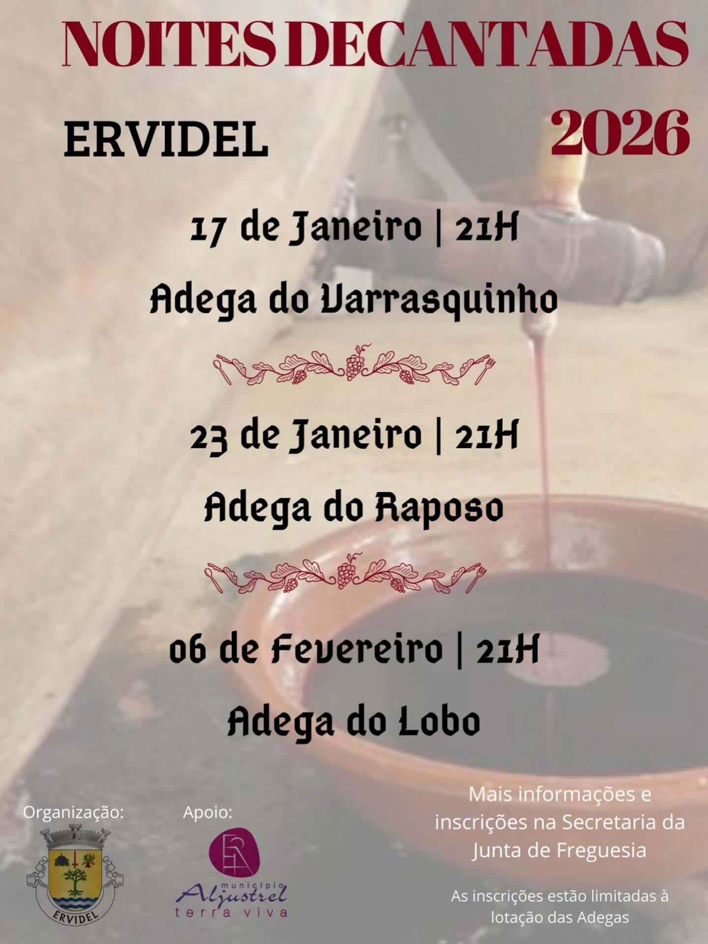 A decorrer dias 17 e 23 de janeiro e 6 de fevereiro. As inscrições são limitadas. Mais informações na Junta de Feguesia de Ervidel. Facebook
