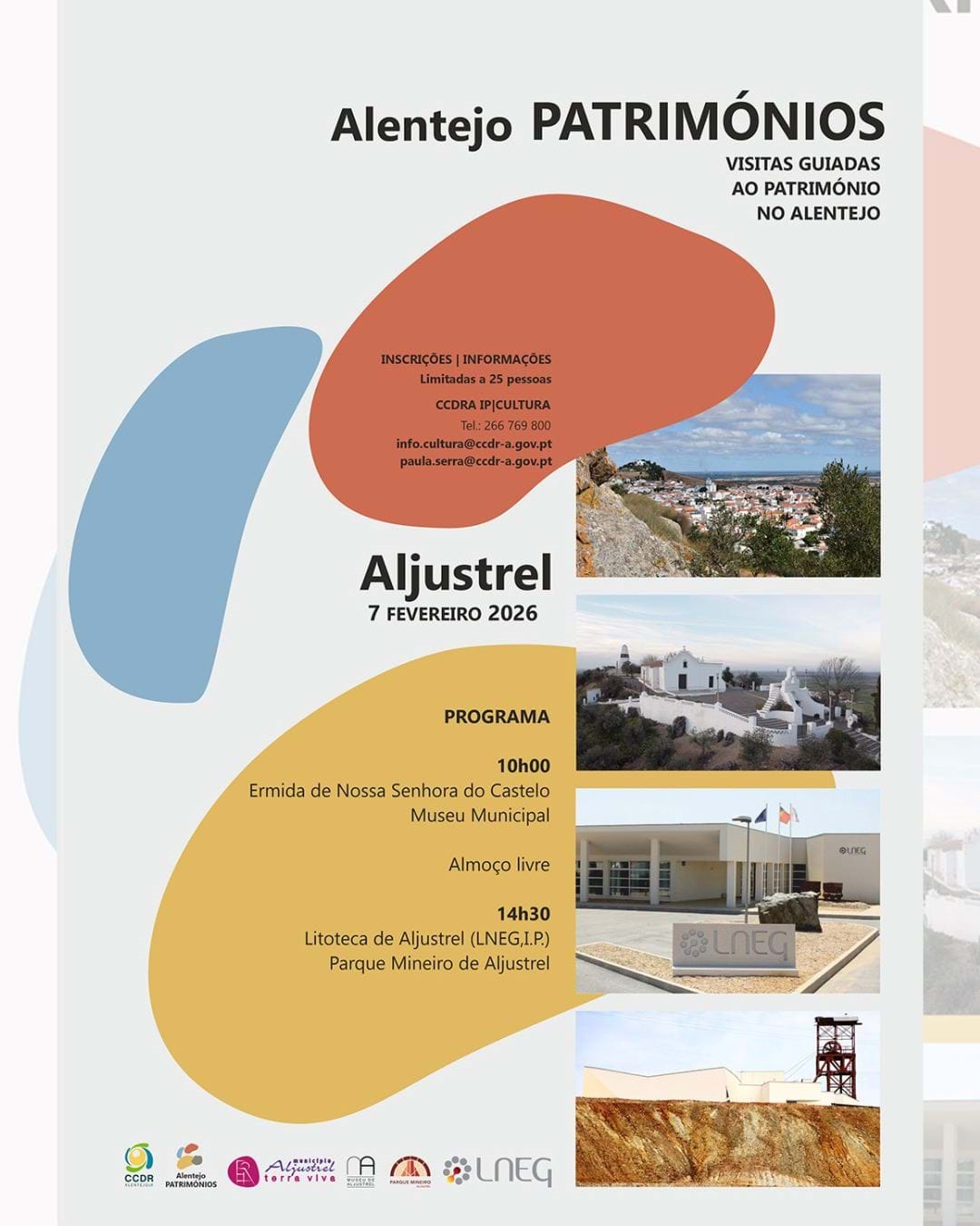 Visita adiada (mais informações) Ermida da N.ª Sr.ª do Castelo, Museu Municipal, Litoteca (LNEG) e Parque Mineiro. Inscrições gratuitas e limitadas através de info.cultura@ccdr-a.gov.pt paula.serra@ccdr-a.gov.pt ou 266769800. Org.: CCDR e Apoio:...
