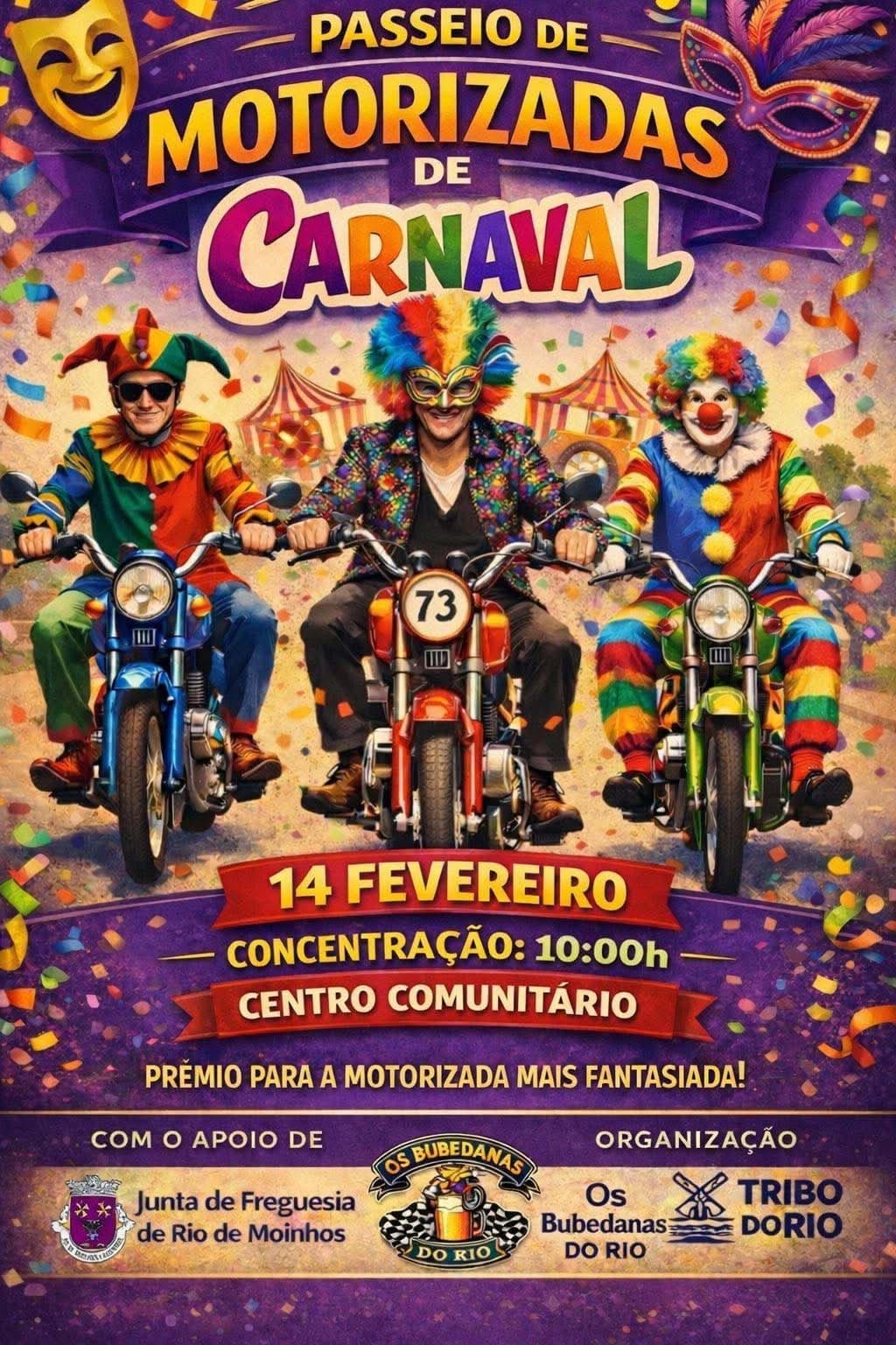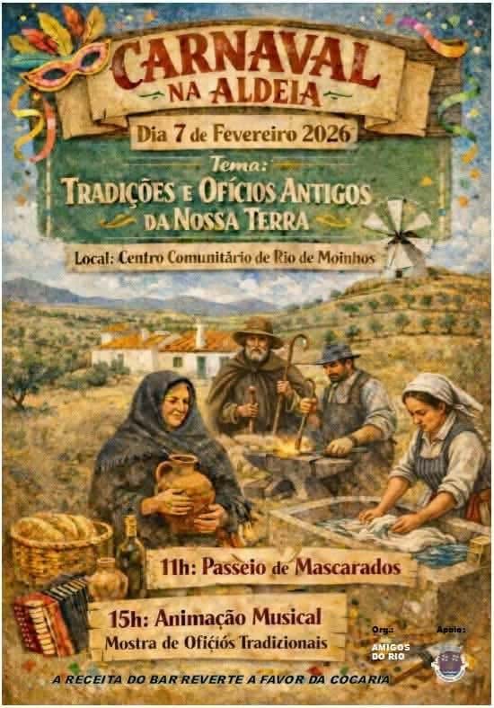 Nota: Adiado 11h00 – Passeio de mascarados pela aldeia 15h00 – Animação musical (Centro Comunitário) Org.: Amigos do Rio [Rio de Moinhos]