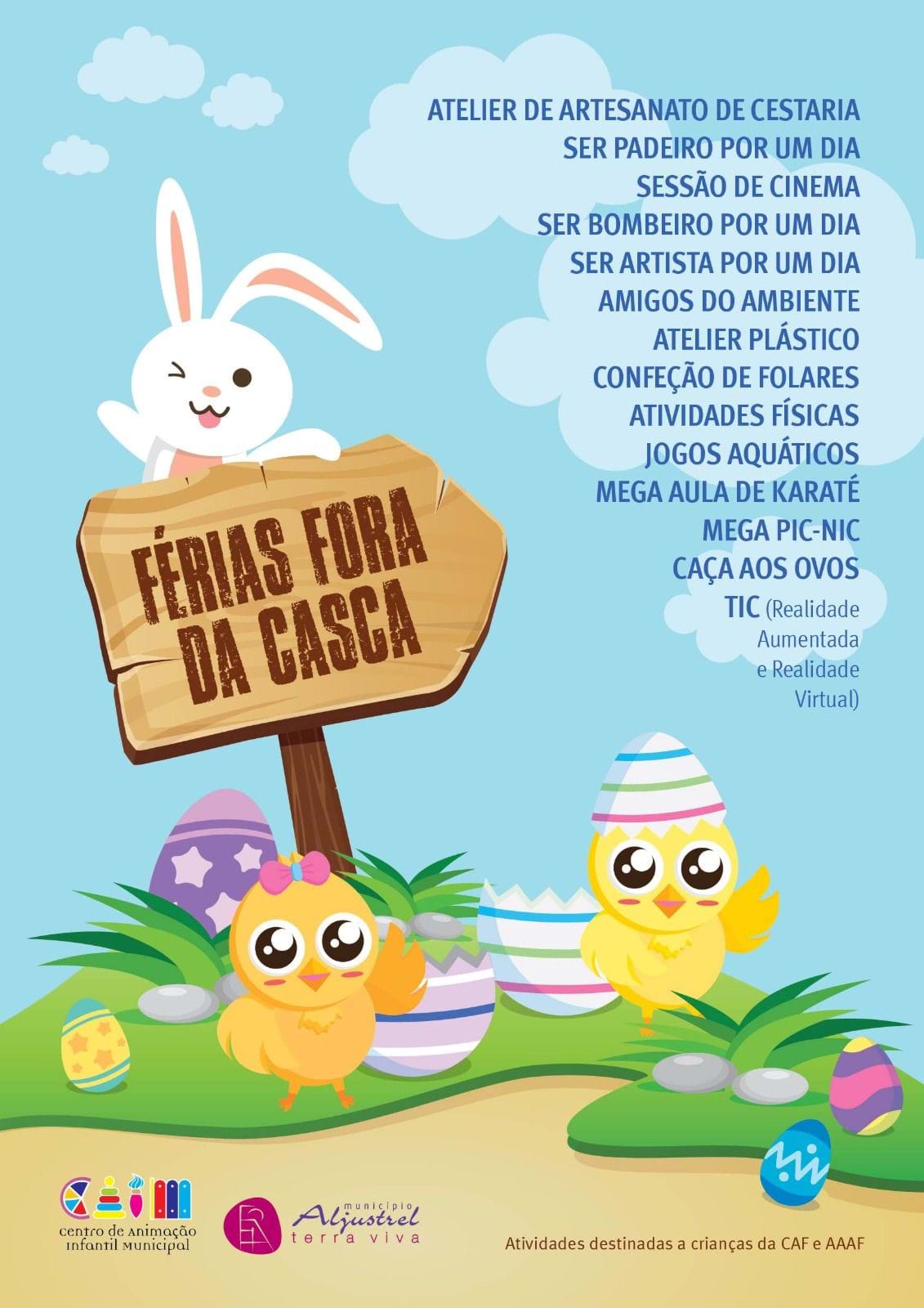 A Câmara Municipal de Aljustrel decidiu apostar, em tempo de pausa letiva, em atividades diferentes e mais apelativas para as crianças e, nesta Páscoa, criou o programa “Férias Fora da Casca”. Este programa destina-se a alunos do pré-escolar e do 1.º Ciclo...