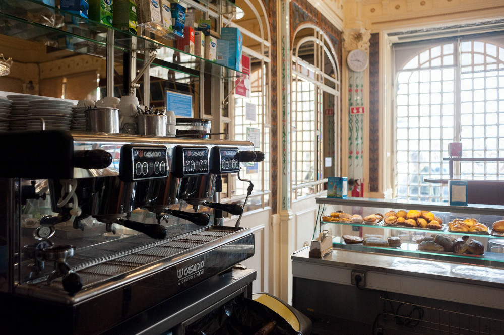 Este edifício,classificado como Imóvel de Interesse Público,desenvolve-se em três pisos revestidos a azulejos policromados,originais no seu desenho colorido.Os dois andares superiores surgem rasgados,alternadamente,por janelas de peito de vão rectangular e por janelas de sacada com guardas de ferro,todas elas emolduradas a cantaria,sendo o conjunto rematado por cornija coroada por platibanda.No piso térreo merece destaque a padaria,cujo tratamento da fachada,em estrutura de ferro,rasgada por três arcos abatidos separadas por estreitas colunas e sobrepujadas por entablamento,formando portas e montras,revela uma articulação inovadora do vidro e do ferro.No interior destaca-se a decoração Arte Nova,nomeadamente os estuques do tecto e a combinação,bem conseguida,dos materiais utilizados:ferro,madeira,vidro e azulejos pintados com motivos florais e naturalistas da oficina de Rafael Bordalo Pinheiro.